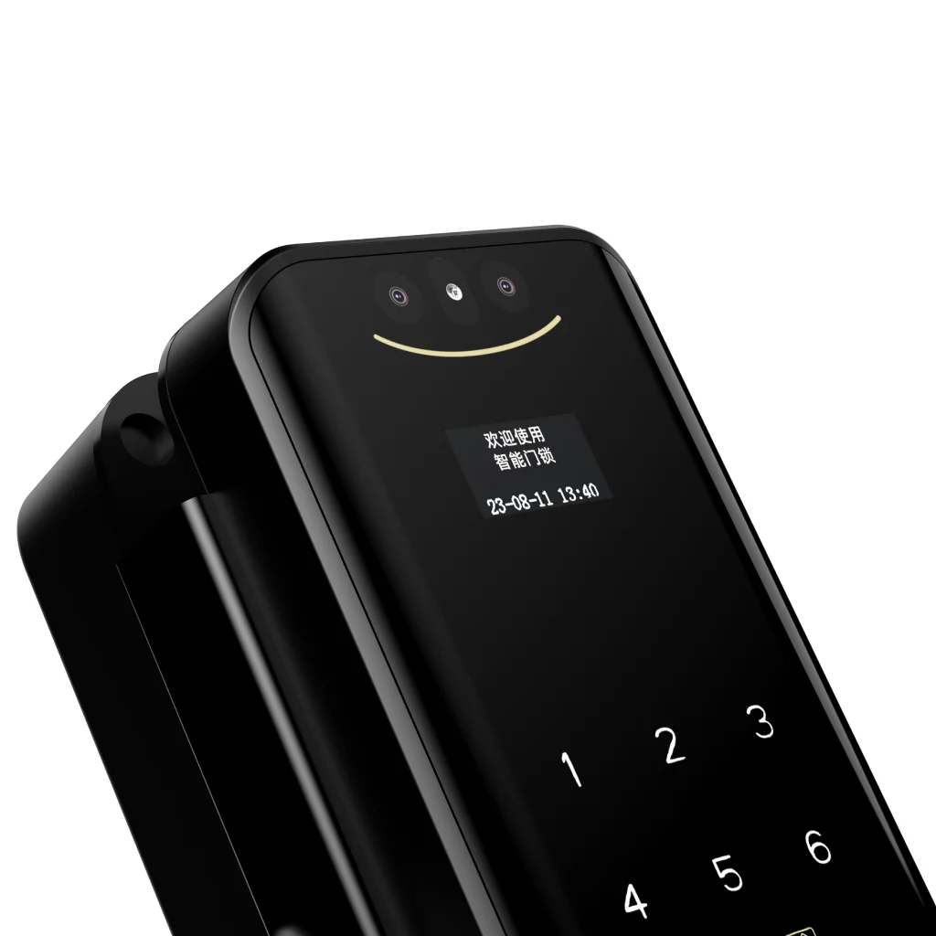 Yes, it features dual-camera facial recognition, making it a secure smart door lock with face ID.